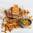 Gatavoti no garšīgās Liepkalnos ceptās, pircēju iecienītās saldskābmaizes, sagriezti smalkās strēmelītēs, rūpīgi apgrauzdēti un bagātināti ar garšvielām. Izteiksmīgu garšas niansi piešķir sēņu notis, kas padara uzkodu sēnīgu. Lieliska izvēle dārza svētkiem – ērti paņemami līdzi praktiskā kastītē.