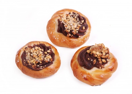 Rauga mīklas maizītes ar šokolādes krēma pildījumu.