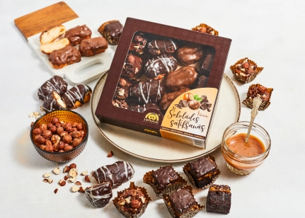 Braunijs (cukurs, kviešu milti, kakao pulveris, rapšu eļļa, olu baltuma pulveris, aromatizētājs, emulgatori E472b, E471, antioksidants E306), karameļu pildījums (23 %)(glikozes – fruktozes sīrups, sausais vājpiens, palmu un basijas kauliņu eļļa, pārveidota ciete, biezinātājs pektīns, karamelizēts cukura sīrups, sāls, skābuma regulētājs citronskābe, aromatizētājs), šokolādes glazūra (13%) (augu tauki, kakao pulveris, emulgators sojas lecitīns, aromatizētājs), olas, rapšu eļļa, zemesrieksti (5 %), saulespuķu sēklas (3%)