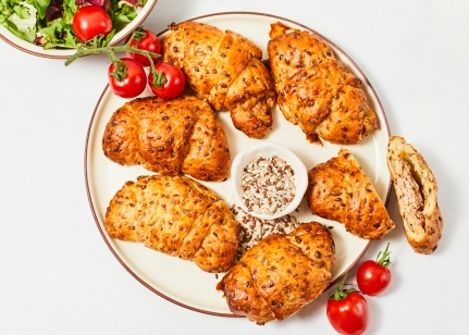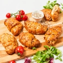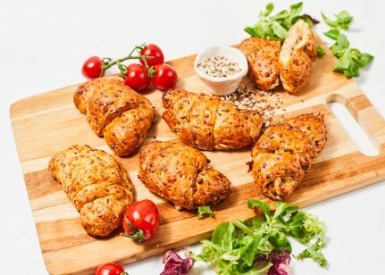 Kūpināts vistas giross (23%)( vistas gaļa, dekstroze, ķiploki, garšvielas, skābuma regulētājs etiķskābe, stabilizētāji E407, E450, garšas pastiprinātājs E621, augu olbaltumvielas (kukurūza, rapsis), konservanti nātrija nitrīts, E262, antioksidants E316, garšvielu ekstrakts, biezinātāji E415, E425), kviešu milti, sēklu maisījums (saulespuķu sēklas, linsēklas, sezama sēklas), majonēze (rapšu eļļa, olu pulveris un olu masa, vājpiena pulveris, cukurs, sāls, skābuma regulētāji etiķskābe, citronskābe, dzeramā soda, konservants kālija sorbāts, sinepju sēklu aromatizētājs, krāsviela beta karotīns), margarīns (augu tauki (palmu eļļa), augu eļļa (rapšu eļļa), emulgatori E471, saulespuķu lecitīns, skābuma regulētājs citronskābe, krāsviela beta karotīns), olu masa, cukurs, rapšu eļļa, raugs, ķirbju biezenis, garšvielu maisījums (sarkanā paprika, zaļā paprika, burkānu granulas, sīpolu granulas, ķimenes, pipari melnie, sinepju sēklas), sūkalu pulveris, sāls, antioksidants askorbīnskābe