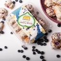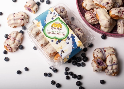 Meža melleņu pildījums (24%)( mellenes, glikozes – fruktozes sīrups, dabīgs aromatizētājs), šokolādes glazūra (cukurs, palmu tauki (RSPO SG), rapšu eļļa, vājpiena pulveris, laktoze, kakao sviests, sūkalu pulveris, emulgators sojas lecitīns, hidrogenēti augu tauki, aromatizētājs vanilīns), olu masa, saldais krējums, kviešu milti, margarīns (augu tauki (palmu eļļa), augu eļļa (rapšu eļļa), emulgatori E471, saulespuķu lecitīns, skābuma regulētājs citronskābe, dabīgs aromatizētājs, krāsviela beta karotīns), cukurs, upenes sublimētas, sāls, pārtikas krāsvielas E120, E133)