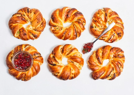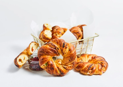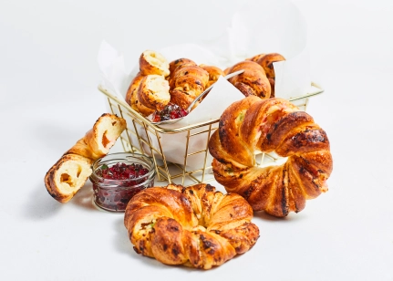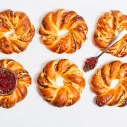 Kviešu milti, biezpiens (22%), margarīns (palmu eļļa SG, rapšu eļļa, emulgatori E471, E475, saulespuķu lecitīns, skābuma regulētājs citronskābe, dabīgs aromatizētājs, krāsviela karotīns), marmelāde (7%)(glikozes – fruktozes sīrups, skābuma regulētājs E331, stabilizētājs pektīns, krāsviela hlorofils, karmīns, annatto, aromatizētāji, dabīgs apelsīnu aromatizētājs), cukurs, rapšu eļļa, olu masa, biezpiena piedeva (modificētā ciete E1414, olbaltuma pulveris, skābuma regulētājs citronskābe, aromatizētāji citronu un vaniļas), raugs, ķirbju biezenis, sūkalu pulveris, sāls, rudzu milti, antioksidants askorbīnskābe