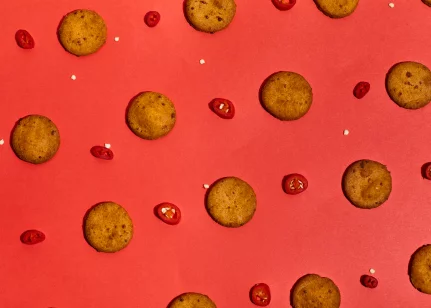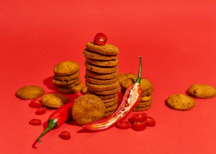 Miltu maisījums (bez lipekļa)(kukurūzas ciete, rīsu milti, augu šķiedras (ceļtekas, bambuss), pilngraudu rīsu milti, lēcu milti, dekstroze, biezinātājs E464, sāls), siers (23%)(piens, ieraugs, cietinātājs kalcija hlorīds), augu eļļas (kokosriekstu, rapšu), olas, zirņu olbaltumvielas, tapiokas ciete, garšvielu maisījums ar saldo čilli (2%)(garšvielas, dekstroze, čilli (4.5%), skābe citronskābe, kūpināta paprika, antioksidants askorbīnskābe), ceļteku sēklu sēnalu pulveris, antioksidants rozmarīna ekstrakts, dabīgs siera aromatizētājs, čilli pipari (0.25%), asās paprikas pulveris (0.2%)