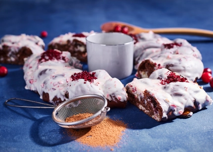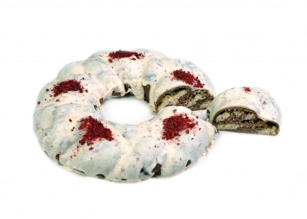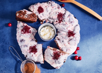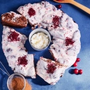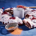 Biezpiens (26 %), kviešu milti, šokolādes glazūra (16 %) (cukurs, palmu tauki, rapšu eļļa, vājpiena pulveris, glikozes sīrups, kakao sviests, emulgatori E472a, saulespuķu lecitīns, aromatizētājs), cukurs, dzērveņu ievārījums (dzērvenes, glikozes un fruktozes sīrups, ūdens, biezinātājs pektīns), olu masa, biezpiena piedeva (modificētā ciete E1414, olbaltuma pulveris, skābuma regulētājs citronskābe, aromatizētāji citronu un vaniļas), rapšu eļļa, kakao pulveris (1 %), raugs, margarīns (augu tauki (palmu eļļa), augu eļļas (rapšu), emulgatori E471, saulespuķu lecitīns, skābuma regulētājs citronskābe, aromatizētājs, krāsviela beta karotīns), kirbju biezenis, sūkalu pulveris, dzērvenes a/k, sāls, ķirši žāvēti, rudzu milti