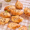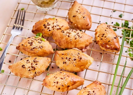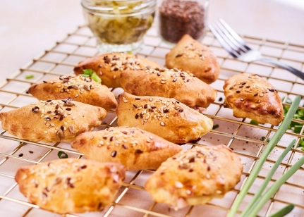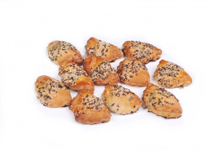 Kviešu milti, pīrādziņu gaļa (19 %) (cūkgaļa, cūku vaigi, sāls, dekstroze, stabilizētāji E450, E451, biezinātāji E407, E412, E415, rauga ekstrakts, aromatizētāji, antioksidants E316, kviešu šķiedras, konservants nātrija nitrīts), margarīns (augu tauki, augu eļļa, emulgatori E471, saulespuķu lecitīns, skābuma regulētājs citronskābe, aromatizētājs, krāsviela beta karotīns), marinēti gurķi (8 %) (etiķis, garšvielas (dilles, sīpoli sinepju un piparu graudiņi, saldinātājs saharīns, dabīgais aromatizētājs), sēklu maisījums (sezama sēklas, saulespuķu sēklas, linsēklas), olu masa, sīpoli, cukurs, rapšu eļļa, raugs, ķirbju biezenis, sāls, sūkalu pulveris, garšvielu maisījums (kaltēti dārzeņi (burkāni, kurkuma, dilles, pētersīļi, sīpoli, paprika sarkanā), rudzu milti, melnie pipari
