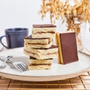 Kviešu milti, margarīns (augu tauki, augu eļļa, emulgatori E471, saulespuķu lecitīns, skābuma regulētājs citronskābe, aromatizētājs, krāsviela beta karotīns), cukura glazūra (glikozes sīrups), cukurs, saldais krējums, kakao pulveris, vaniļas krēms (modificētā ciete E1414, saldo sūkalu pulveris, dekstroze, sausais glikozes sīrups, biezinātājs E401, emulgators E471, dabīgiem identiski aromatizētāji, krāsviela E101), cepamais pulveris (irdinātāji E450(I), dzeramā soda), sāls