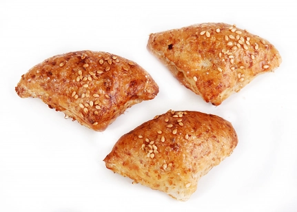 Kviešu milti, pīrādziņu gaļa (28 %)(cūkgaļa, cūku vaigi, sāls, konservants nātrija nitrīts, garšvielas, dekstroze, antioksidants E316, biezinātājs E407, stabilizētāji E450, E451, garšas pastiprinātājs E621), margarīns (augu tauki (palmu eļļa), augu eļļa (rapšu eļļa), emulgatori E471, saulespuķu lecitīns, skābuma regulētājs citronskābe, krāsviela beta karotīns), kviešu klijas (4 %), olu masa, cukurs, rapšu eļļa, sezama sēklas, raugs, ķirbju biezenis, sūkalu pulveris, sāls, garšvielu maisījums (kaltēti dārzeņi (burkāni, kurkuma, dilles, pētersīļi, sīpoli, paprika sarkanā), rudzu milti, melnie pipari