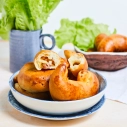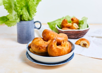 Kviešu milti, pīrādziņu gaļa (28 %)(cūkgaļa, cūku vaigi, sāls, konservants nātrija nitrīts, garšvielas, dekstroze, antioksidants E316, biezinātājs E407, stabilizētāji E450, E451, garšas pastiprinātājs E621), rapšu eļļa, olu masa, cukurs, raugs, ķirbju biezenis, margarīns (augu tauki (palmu eļļa), augu eļļas (rapšu), emulgatori E471, saulespuķu lecitīns, skābuma regulētājs citronskābe, aromatizētājs, krāsviela beta karotīns), sūkalu pulveris, sāls, rudzu milti, garšvielu maisījums (kaltēti dārzeņi (burkāni, kurkuma, dilles, pētersīļi, sīpoli, paprika sarkanā), melnie pipari