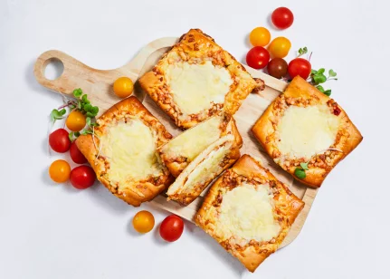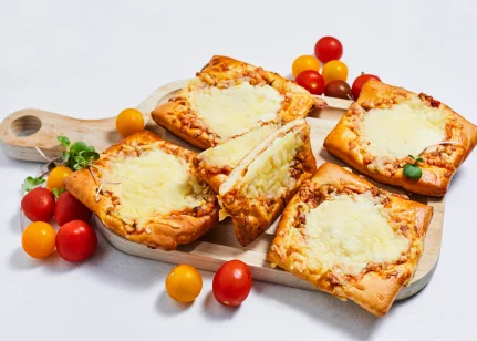 Kviešu milti, tomātu mērce ar dārzeņiem (tomātu koncentrāts 20%, sīpoli 20 %, gurķi 20%, cukurs, etiķis, paprika 5%, modificēta kukurūzas ciete, garšvielas, sāls, biešu sulas koncentrāts, saldinātājs E954, aromatizētājs), pīrādziņu gaļa (cūkgaļa, cūku vaigi, dekstroze, stabilizētāji E450, E451, E407, biezinātāji E407a, E412, E415, E425, rauga ekstrakts, aromatizētāji, antioksidants E301, kviešu šķiedras, pārveidota ciete, maltodekstrīns, hidrolizētas augu olbaltumvielas, dabīgi aromatizētāji, garšvielu ekstrakti (ķiploki, koriandrs, sīpoli), kūpināšanas aromatizētājs, konservants nātrija nitrīts, dzīvnieku izcelsmes olbaltumvielas), siers (piens, ieraugs, ferments, cietinātājs kalcija hlorīds), majonēze (rapšu eļļa, olu pulveris, vājpiena pulveris, modificētā ciete, skābuma regulētāji etiķskābe, pienskābe, biezinātāji guāra sveķi, ksantāna sveķi), olu masa, cukurs, rapšu eļļa, raugs, margarīns (augu eļļas (rapšu, palmu), emulgatori rapšu lecitīns, E471, skābuma regulētājs citronskābe, dabīgs aromatizētājs, krāsviela beta karotīns), ķirbju biezenis, sūkalu pulveris, sāls, antioksidants askorbīnskābe