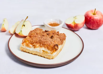 Ābolu – kanēļa pildījums (33%)((žāvēti āboli, glikozes – fruktozes sīrups, pārveidota ciete, dabīgs aromatizētājs, recinātājs E418, skābe citronskābe, kanēlis 0.08%, antioksidants askorbīnskābe), biezpiens (21%), kviešu milti, margarīns (augu tauki (palmu eļļa), augu eļļas (rapšu), emulgatori E471, saulespuķu lecitīns, skābuma regulētājs citronskābe, dabīgs aromatizētājs, krāsviela beta karotīns), cukurs, olu masa, biezpiena piedeva (modificētā ciete E1414, olbaltuma pulveris, skābuma regulētājs citronskābe, aromatizētāji citronu un vaniļas), pūdercukurs, kanēlis, cepamais pulveris (irdinātāji E450, dzeramā soda), sāls