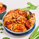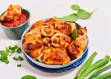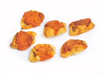 Cīsiņi (41%)( cūkgaļa 45%, vistas gaļa 22%, cūku speķis 8%, dzeramais ūdens, piena olbaltumvielas, sāls, stabilizētāji E450, E451, biezinātāji E412, E1442, glikozes sīrups, maltodekstrīns, dekstroze, antioksidanti E300, E330, aromatizētājs, rauga ekstrakts, garšvielu ekstrakti (čili, melnie pipari, kardamons), konservants E250), kviešu milti, margarīns (augu tauki (palmu eļļa), augu eļļas (rapšu), emulgatori E471, saulespuķu lecitīns, skābuma regulētājs citronskābe, dabīgs aromatizētājs, krāsviela beta karotīns), siers (7%) (piens, kalcija hlorīds, pārtikas krāsviela beta karotīns, kukurūzas ciete), cukurs, rapšu eļļa, olu masa, raugs, ķirbju biezenis, sūkalu pulveris, sāls, rudzu milti, antioksidants askorbīnskābe