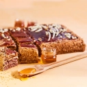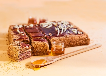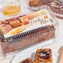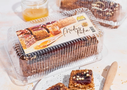 Skābais krējums, dekorželeja (glikozes sīrups, cukurs, karameļu sīrups, recinātāji agar-agar, pektīns, stabilizētajs E450 (iii), aromāts toffee, skābuma regulētājs citronskābe, konservants kālija sorbāts, skābuma regulētājs trinātrija citrāts), kviešu milti, saldais krējums (emulgators E471, stabilizētajs karagināns), cukurs, olu masa, medus (5 %), šokolādes dekori (kakao sviests, rīsu milti, pilnpiena pulveris, kakao masa, kviešu milti, kviešu šķiedrvielas, emulgators sojas lecitīns, glikozes sīrups (no kviešiem un kukurūzas), laktoze, sāls, miežu iesala milti, sūkalu pulveris, biezinātājs E414, pārveidota ciete, augu eļļas (palmu, palmu kodolu), vanilīns, vaniļas ekstrakts, skābuma regulētājs citronskābe, dabīgs vaniļas aromatizētājs, sviesta eļļa), irdinātājs dzeramā soda