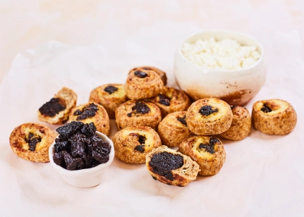 Biezpiens (24 %), kviešu milti, žāvētas plūmes (15 %), margarīns (augu tauki (palmu eļļa), augu eļļa (rapšu eļļa), emulgatori E471, saulespuķu lecitīns, skābuma regulētājs citronskābe, krāsviela beta karotīns), cukurs, rudzu rīvmaize (7 %)(rudzu milti, kviešu milti, cukurs, rudzu iesals, sāls, kviešu klijas, raugs, miežu iesala ekstrakts, ķimenes), biezpiena piedeva (modificētā ciete E1414, olbaltuma pulveris, skābuma regulētājs citronskābe, aromatizētāji citronu un vaniļas), olu masa, rapšu eļļa, raugs, ķirbju biezenis, sūkalu pulveris, sāls, antioksidants askorbīnskābe
