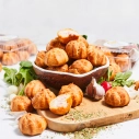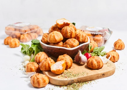 Karsti kūpināts vistas giross (20 %)(vistas gaļa, dekstroze, ķiploki, garšvielas (t.sk. sinepes), skābuma regulētājs E260, stabilizētāji E407, E451, garšas pastiprinātājs E621, augu olbaltumvielas (kukurūza, rapsis), konservanti nātrija nitrīts, E262, antioksidants E316, garšvielu ekstrakts, biezinātāji E415, E425), krēmsiers (paniņas, piens, piena pulveris, stabilizētājs E410, konservanti sorbīnskābe un baktēriju tīrkultūra), olu masa, majonēze (rapšu eļļa, olu pulveris un olu masa, vājpiena pulveris, skābuma regulētāji etiķskābe, citronskābe, dzeramā soda, konservants kālija sorbāts, sinepju sēklu aromatizētājs, krāsviela beta karotīns), kviešu milti, margarīns (augu tauki (palmu eļļa), augu eļļa (rapšu eļļa), emulgatori E471, saulespuķu lecitīns, skābuma regulētājs citronskābe, dabīgs aromatizētājs, krāsviela beta karotīns), mango biezenis, tomātu kraukšķis (tomātu pasta, siers, saulespuķu eļļa, Provansas garšvielas, dabīgs antioksidants rozmarīna ekstrakts), želeja (cukurs, skābuma regulētāji citronskābe, E331, E340, recinātāji karagināns, pektīns, biezinātāji E410, E414, dekstroze, karamelizēts cukurs, aromatizētājs), paprika asā malta (0.35 %), sāls