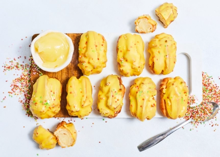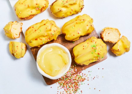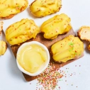 Olu masa, glazūra ar citronu garšu (cukurs, augu tauki (palmu RSPO, SG), kokosriekstu eļļa, laktoze, sūkalu pulveris, piena olbaltumvielas, emulgatori E492, sojas lecitīns, krāsviela karotīns, dabīgs aromatizētājs, aromatizētājs), kviešu milti, vaniļas krēms (pārveidota ciete, sūkalu pulveris, kokosriekstu eļļa, stabilizētāji E450 (ii), E339, E516, biezinātājs E401, krāsviela beta karotīns, aromatizētājs), margarīns (augu eļļas (rapšu, palmu), sāls, emulgatori rapšu lecitīns, E471, skābuma regulētājs citronskābe, dabīgs aromatizētājs, krāsviela beta karotīns), iebiezinātais piens, sviests, pildījums ar olu liķiera garšu (2 %)(cukurs, glikozes – fruktozes sīrups, pārveidota ciete, stabilizētāji E460, E466, palmu tauki, krāsvielas E171, E160a, E101, aromatizētājs), cukura dekori (cukurs, ciete (kviešu, kukurūzas), glikozes sīrups, krāsvielas E100, E101, E120, E131, E172, augu eļļas (kokosa, rapšu), sāls