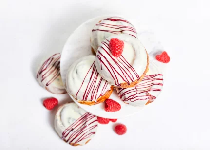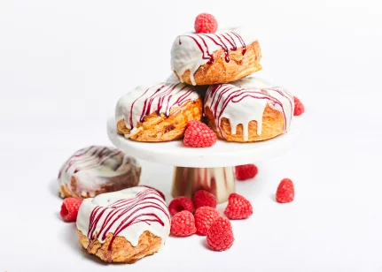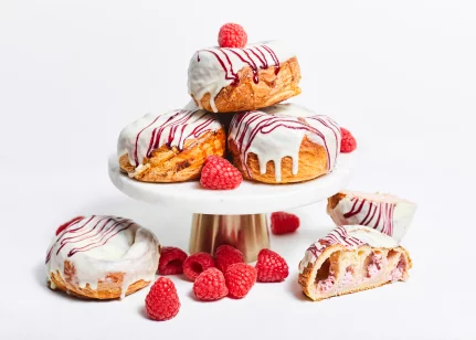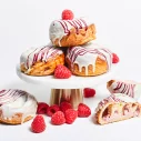 Mīksta un gaisīga maizīte ar krēmīgu biezpienu un viegli skābenu aveņu pildījumu, pārklāta ar saldu glazūru. Lieliska izvēle pie kafijas vai nelielai saldai pauzei dienas laikā.