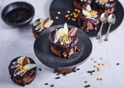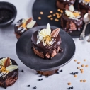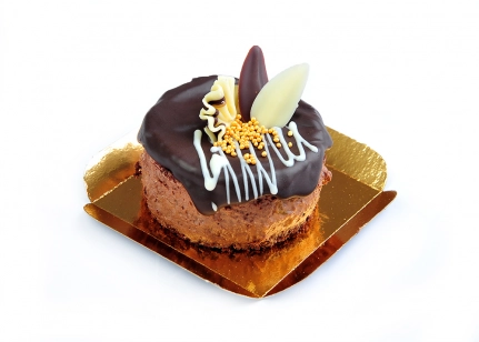 Saldais krējums, olas, šokolādes glazūra (augu tauki (palmu eļļa, basijas kodolu eļļa), kakao pulveris, vājpiena pulveris, emulgators sojas lecitīns, aromatizētājs, rapšu eļļa, glikozes sīrups, kakao sviests, emulgatori E472a, saulespuķu lecitīns), konservēti persiki, cukurs, kviešu milti, putukrējuma stabilizators (šokolādes pulveris (90 %)(cukurs, kakao pulveris, želatīns, ciete, aromatizētājs), šokolādes un cukura dekori (pilnpiena pulveris, sūkalu pulveris, dabīgs vaniļas aromatizētājs, piena tauki, kakao masa, laktoze, dekstroze, rīsu milti, glazētājviela E904, krāsvielas E172, E171, kurkumīns, kokosriekstu eļļa, sāls, skābuma regulētājs citronskābe), kakao pulveris, kartupeļu ciete