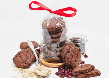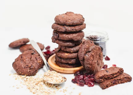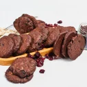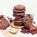Kviešu milti, sviests, dzērvenes kaltētas (dzērvenes, skābuma regulētājs citronskābe, saulespuķu eļļa), cukurs, pilngraudu pārslas (rudzu, kviešu, miežu, auzu), kakao pulveris, šokolādes graudiņi (4%) (kakao masa, kakao sviests, kakao pulveris, emulgators sojas lecitīns, aromatizētājs vanilīns), olas, cepamais pulveris (irdinātāji E450i, dzeramā soda, kartupeļu ciete)