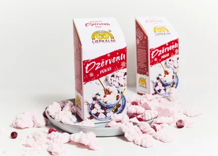 cukurs, olbaltuma piedeva (olu baltuma pulveris, biezinātāji E466, E412, stabilizētājs E1505), dzērveņu piedeva (4 %)(glikozes sīrups, dzērveņu sulas koncentrāts, ābolu sulas koncentrāts, melno burkānu sulas koncentrāts, ciete, dabīgs aromatizētājs), skābuma regulētājs citronskābe