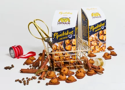 Lai padarītu svētku laiku jautrāku un piešķirtu piparkūkām jaunu sajūtu gammu, mūsu meistari papildināja klasisko piparkūku ar neierastāku noformējumu - marcipāna figūriņu. Jautrības nekad nav par daudz, īpaši tumšajā ziemas laikā, kad novērtējam mazos prieciņus, pat ja tie tikai cepuma dekoriņi. Draiski ar marcipāna actiņām smejas piparkūku cepumi. Nāc bariņā, visiem pietiks!