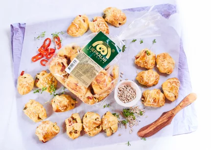 Šķiņķis (25 %)(cūkas šķiņķis, sojas olbaltumvielas, stabilizētāji E451, E450, biezinātājs 407, maltodekstrīns, garšas pastiprinātājs E621, antioksidants E316, garšvielu ekstrakti (pipari, čilli), aromatizētājs, dekstroze, konservants nātrija nitrīts), kviešu milti, margarīns (augu tauki (palmu eļļa), augu eļļa (rapšu eļļa), emulgatori E471, saulespuķu lecitīns, skābuma regulētājs citronskābe, dabīgs aromatizētājs, krāsviela beta karotīns), marinēti gurķi (etiķis, garšvielas (dilles, sīpoli sinepju un piparu graudiņi, saldinātājs saharīns, dabīgais aromatizētājs), siers (piens, kalcija hlorīds, baktēriju tīrkultūra, pārtikas krāsviela beta karotīns), paprika konservēta (paprika, etiķis, glikozes sīrups, stabilizētājs E509, saldinātājs saharīns), saulespuķu sēklas, olu masa, cukurs, rapšu eļļa, raugs, ķirbju biezenis, sūkalu pulveris, sāls, melnie pipari, rudzu milti, antioksidants askorbīnskābe, kviešu ciete