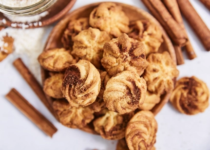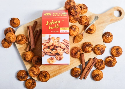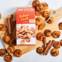 Bezglutēna miltu maisījums (bezglutēna kviešu ciete, lupīnu milti, kukurūzas ciete, linsēklu milti, biezinātājs guāra milti, cukurs, emulgators saulespuķu lecitīns, cepamais pulveris (irdinātāji E450, dzeramā soda), sāls), augu tauku maisījums (augu eļļas (kokosriekstu, rapšu), ūdens), cukurs, olas, kokosriekstu milti (6%), cukura sīrups, kanēlis (0.9%), biezinātājs ksantāna sveķi, rozmarīna ekstrakts