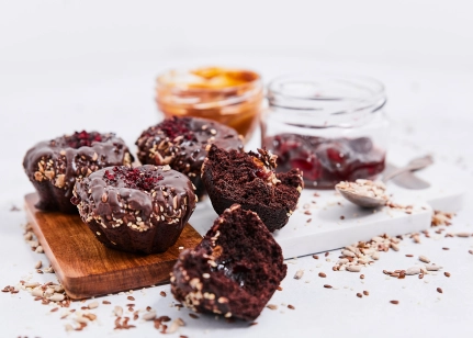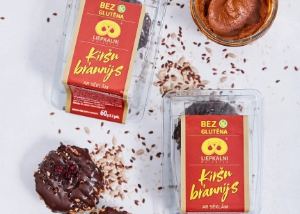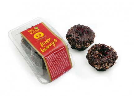Bezglutēna brauniju maisījums (cukurs, kakao pulveris, kartupeļu ciete, palmu eļļa, sūkalu pulveris, dekstroze, olu baltuma pulveris, irdinātāji E450, dzeramā soda, emulgators E471, sāls, biezinātājs E415), ķiršu pildījums (14%)(ķirši, cukurs, pārveidota ciete, biezinātājs želena sveķi, glikozes – fruktozes sīrups, skābe citronskābe), šokolādes krēms un šokolādes glazūra (cukurs, augu tauki (palmu eļļa, basijas kodolu eļļa), kakao pulveris, vājpiena pulveris, emulgators sojas lecitīns, aromatizētājs, pilnīgi hidrogenizēta palmu kodolu eļļa, emulgators saulespuķu lecitīns, aromatizētājs vanilīns), sēklu maisījums (saulespuķu sēklas, linsēklas, sezama sēklas), karamelizētā piena krēms (7%)(cukurs, vājpiena pulveris, palmu eļļa, biezinātājs kukurūzas ciete, stabilizētāji E401, E509, citrusaugļu šķiedrvielas), rapšu eļļa, olas, ķirši (saldējot žāvēti)