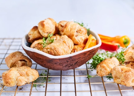 Kviešu milti, pīrādziņu gaļa (20 %)( cūkgaļa, cūku vaigi, sāls, dekstroze, stabilizētāji E450, E451, biezinātāji E407, E412, E415, rauga ekstrakts, aromatizētāji, antioksidants E316, kviešu šķiedras, konservants nātrija nirīts)), margarīns (augu tauki (palmu eļļa), augu eļļas (rapšu), emulgatori E471, saulespuķu lecitīns, skābuma regulētājs citronskābe, aromatizētājs, krāsviela beta karotīns), sīpoli, cukurs, rapšu eļļa, olu masa, ķirbju biezenis, sūkalu pulveris, sāls, raugs, rudzu milti, garšvielu maisījums (kaltēti dārzeņi (burkāni, kurkuma, dilles, pētersīļi, sīpoli, paprika sarkanā), melnie pipari