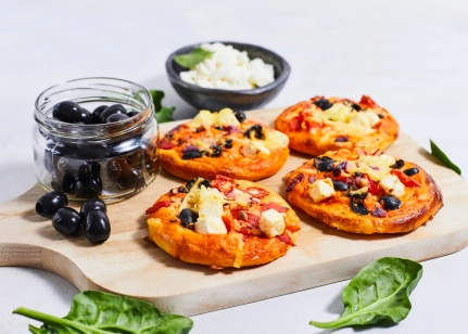 Kviešu milti, siers (piens, sāls, skābuma regulētājs E575), tomāti, skābais krējums, tomātu mērce (tomātu biezenis, pārveidota kartupeļu ciete, garšvielas, skābuma regulētājs etiķskābe), paprika konservēta (paprika, etiķis, glikozes sīrups, stabilizētājs E509, saldinātājs saharīns), olīvas (olīvas, sāls, stabilizētājs E575), siers (piens, kalcija hlorīds, pienskābo baktēriju tīrkultūra, ferments, vārāmā sāls, pārtikas krāsviela beta karotīns), sīpoli, cukurs, rapšu eļļa, ķirbju biezenis, margarīns (augu tauki (palmu eļļa), augu eļļa (rapšu eļļa), emulgatori E471, saulespuķu lecitīns, skābuma regulētājs citronskābe, krāsviela beta karotīns), raugs, sūkalu pulveris, sāls