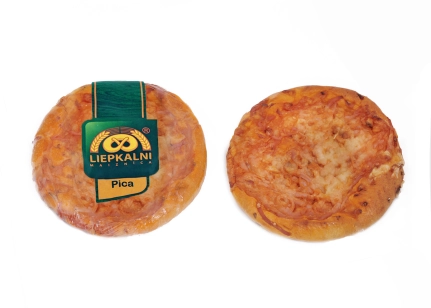 Rauga mīklas pamats, pildījumā siers, desa, žāvēta gaļa, majonēze, tomātu mērce