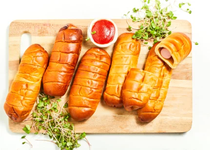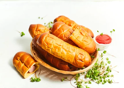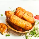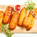 Cīsiņš (48 %)(cūkgaļa, vistas gaļa, cūku speķis, piena olbaltumvielas, olu masa, sāls, kartupeļu ciete, stabilizētāji E450, E451, glikozes sīrups, antioksidants askorbīnskābe, aromatizētājs, rauga ekstrakts, garšvielu ekstrakti (čilli, melnie pipari, kardamons), skābuma regulētājs citronskābe, konservants nātrija nitrīts), kviešu milti, cukurs, rapšu eļļa, olu masa, raugs, ķirbju biezenis, margarīns (augu tauki (palmu eļļa), augu eļļa (rapšu eļļa), emulgatori E471, saulespuķu lecitīns, skābuma regulētājs citronskābe, krāsviela beta karotīns), sūkalu pulveris, sāls, rudzu milti