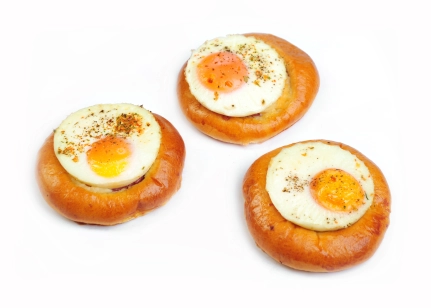 Spēka brokastu maizīte ar pusžāvētu desu, siers, majonēze un cepta ola.