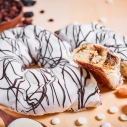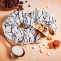 Kviešu milti, šokolādes glazūra (20 %)(cukurs, augu tauki (palmu), rapšu eļļa, vājpiena pulveris, kaltēts glikozes sīrups, kakao sviests, emulgatori E472a, saulespuķu lecitīns, aromatizētājs, kakao pulveris, emulgators sojas lecitīns), vārītā iebiezinātā piena produkts (13 %) (cukurs, vājpiena pulveris, palmu tauki), žāvētu augļu pildījums (9 %)(rozīnes, žāvētas aprikozes, žāvētas plūmes), kokosriekstu skaidiņas, cukurs, margarīns (augu tauki (palmu eļļa), augu eļļa (rapšu eļļa), emulgatori E471, saulespuķu lecitīns, skābuma regulētājs citronskābe, krāsviela beta karotīns), rapšu eļļa, vaniļas krēms (pārveidota ciete, sūkalu pulveris, kokosriekstu eļļa, stabilizētāji E450 (ii), E339, E516, biezinātājs E401, krāsviela beta karotīns, aromatizētājs), olu masa, raugs, ķirbju biezenis, sūkalu pulveris, sāls