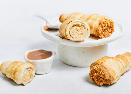 Kviešu milti, saldais krējums, vārītā iebiezinātā piena produkts (21 %) (cukurs, vājpiena pulveris, palmu tauki), margarīns (augu tauki (palmu eļļa), augu eļļa (rapšu eļļa), emulgatori E471, saulespuķu lecitīns, skābuma regulētājs citronskābe, dabīgs aromatizētājs, krāsviela beta karotīns), zemesrieksti, olu masa, pūdercukurs, sāls, skābuma regulētājs citronskābe