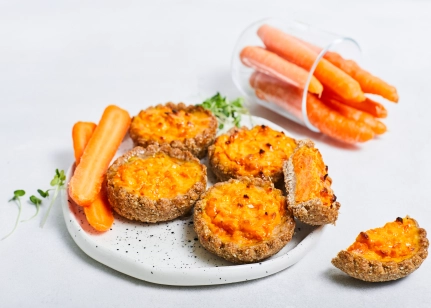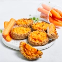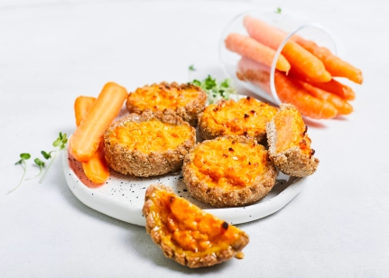 Burkāni (42 %), rudzu milti, olu masa, cukurs, skābais krējums, kviešu milti, sviests, želeja (cukurs, skābuma regulētāji citronskābe, E331, E340, recinātāji karagināns, pektīns, biezinātāji E410, E414, dekstroze, karamele, aromatizētājs)