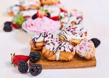 Eklēri ar ogu pildījumu baltajā šokolādē