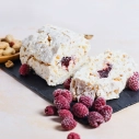 Pūdercukurs, olas baltums, Mascarpone siers, saldais krējums, zemesrieksti, aveņu pildījums (avenes 55%, cukurs, glikozes – fruktozes sīrups, recinātāji pektīns, E410, E415, pārveidota kukurūzas ciete, sulu koncentrāti (burkānu, aroniju, vīnogu), aromatizētājs, krāsviela E120), iebiezinātais piens, kukurūzas ciete, sāls