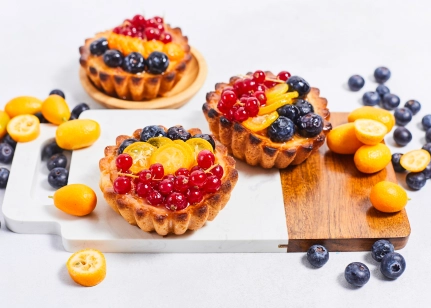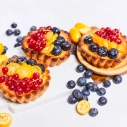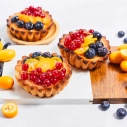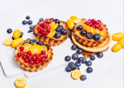 Biezpiens, augļi svaigi un konservēti (22%), kviešu milti, cukurs, margarīns (augu tauki (palmu eļļa), augu eļļas (rapšu), emulgatori E471, saulespuķu lecitīns, skābuma regulētājs citronskābe, dabīgs aromatizētājs, krāsviela beta karotīns), olu masa, biezpiena piedeva (modificētā ciete E1414, olbaltuma pulveris, skābuma regulētājs citronskābe, aromatizētāji citronu un vaniļas), želeja (glikozes sīrups, cukurs, glazētājvielas pektīns, karagināns, aromatizētājs), cepamais pulveris (irdinātāji E450, dzeramā soda), sāls