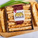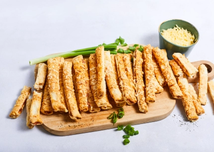 Kviešu milti, margarīns (augu tauki (palmu eļļa), augu eļļas (rapšu), emulgatori E471, saulespuķu lecitīns, skābuma regulētājs citronskābe, aromatizētājs, krāsviela beta karotīns), siers (22 %) (piens, kalcija hlorīds, baktēriju tīrkultūra, pārtikas krāsviela annato), olu masa, sāls, paprikas pulveris, skābuma regulētājs citronskābe