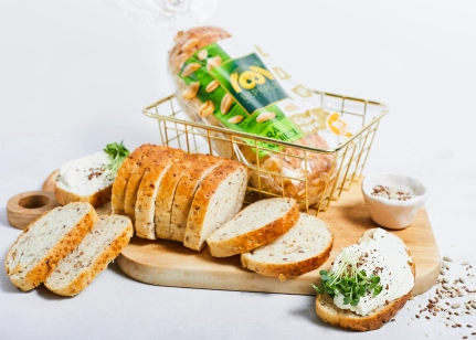 Kviešu milti, miežu graudi (28%), sēklu maisījums (5%)(saulespuķu sēklas, linsēklas, sezama sēklas), raugs, sāls, ķimeņu eļļa (0.4%) (rapšu eļļa (95%), ķimeņu eļļa (5%)), antioksidants askorbīnskābe
