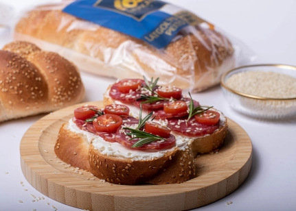 Kviešu milti, sezama sēklas, cukurs, rapšu eļļa, sūkalu pulveris, raugs, sāls, antioksidants askorbīnskābe