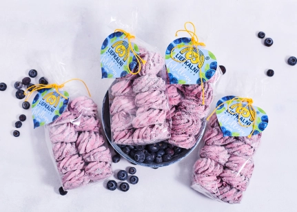 Cukurs, melleņu biezenis (23%)(mellenes, cukurs), ūdens, pūdercukurs, cukurotas citronu miziņas (citronu miziņas, glikozes – fruktozes sīrups, skābuma regulētājs citronskābe, krāsviela kurkumīns), želatīns, skābuma regulētājs citronskābe, krāsvielas titāna dioksīds, krāsviela karmīns, briljantzilais