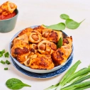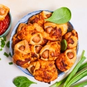 Cīsiņi (32 %)( gaļa 56% (cūku gaļa22%, cāļu gaļa18%, cūku speķis16%), ūdens, mehāniski atdalīta vistas gaļa, kartupeļu ciete, piena sūkalas, sāls, konservants E250, stabilizētājs E451, dekstroze, garšas pastiprinātājs E621, garšvielu ekstrakts, antioksidants E316), kviešu milti, siers (piens, kalcija hlorīds, pārtikas krāsviela beta karotīns, kukurūzas ciete), margarīns (augu tauki (palmu eļļa), augu eļļas (rapšu), emulgatori E471, saulespuķu lecitīns, skābuma regulētājs citronskābe, dabīgs aromatizētājs, krāsviela beta karotīns), majonēze (rapšu eļļa, olu pulveris un olu masa, vājpiena pulveris, skābuma regulētāji etiķskābe, citronskābe, dzeramā soda, konservants kālija sorbāts, sinepju sēklu aromatizētājs, krāsviela beta karotīns), tomātu mērce (tomātu biezenis, pārveidota kartupeļu ciete, garšvielas, skābuma regulētājs etiķskābe), olu masa, cukurs, rapšu eļļa, ķirbju biezenis, raugs, sāls, sūkalu pulveris, sāls