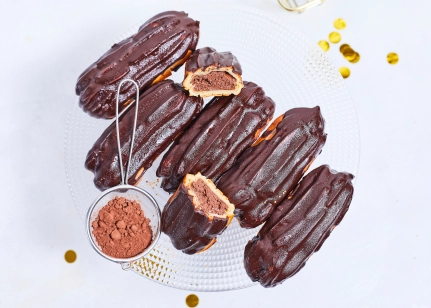 Šokolādes krēms un šokolādes glazūra (32 %)(augu tauki (palmu, šī), kakao pulveris, vājpiena pulveris, emulgators sojas lecitīns, aromatizētājs, pilnībā hidrogenizēti augu tauki, aromatizētājs vanilīns), saldais krējums, olu masa, kviešu milti, margarīns (augu tauki (palmu eļļa), augu eļļa (rapšu eļļa), emulgatori E471, saulespuķu lecitīns, skābuma regulētājs citronskābe, krāsviela beta karotīns), cukurs, sāls