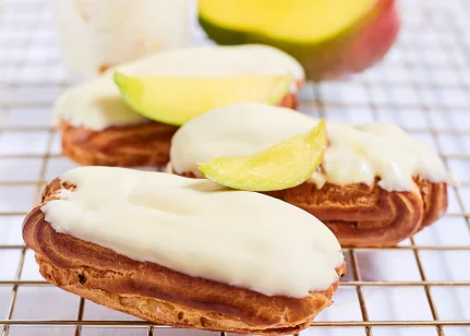Mazi, eksotiski un ļoti garšīgi - mazie eklēri, pildīti ar gaisīgu mango krēmu, mango gabaliņiem. Gardums, kas neatstās vienaldzīgu it nevienu!