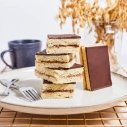 Kviešu milti, margarīns (augu tauki, augu eļļa, emulgatori E471, saulespuķu lecitīns, skābuma regulētājs citronskābe, aromatizētājs, krāsviela beta karotīns), cukura glazūra (glikozes sīrups), cukurs, saldais krējums, kakao pulveris, vaniļas krēms (modificētā ciete E1414, saldo sūkalu pulveris, dekstroze, sausais glikozes sīrups, biezinātājs E401, emulgators E471, dabīgiem identiski aromatizētāji, krāsviela E101), cepamais pulveris (irdinātāji E450(I), dzeramā soda), sāls