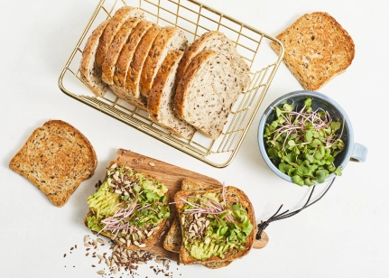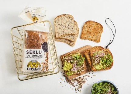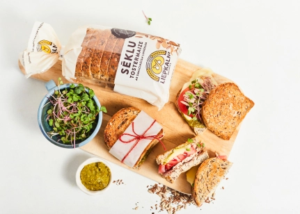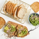 Kviešu milti, (10.1%) (saulespuķu sēklas 6.6%, linsēklas 2.6%, čia sēklas 0.9%), smalcinātas linsēklas (9%), raugs, sāls, cukurs, antioksidants askorbīnskābe, dabīgs aromatizētājs