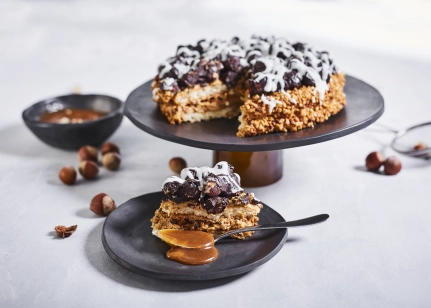 Kraukšķīgums un karameles maigums ir šīs tortes divējādā daba, kas savij garšas dejas virpulī un aizrauj līdzi. Veselie rieksti piedod izteiksmi un pamatīgumu!