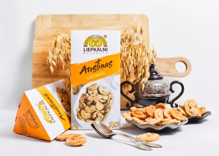 Mutē kūstoši kraukšķīgi austiņu veida kārtainie cepumi ar cukuru