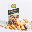 Kviešu milti, margarīns (augu tauki (palmu eļļa), augu eļļas (rapšu), emulgatori E471, saulespuķu lecitīns, skābuma regulētājs citronskābe, dabīgs aromatizētājs, krāsviela beta karotīns), siers (21 %)( piens, kalcija hlorīds, pienskābo baktēriju tīrkultūra, pārtikas krāsviela beta karotīns, kukurūzas ciete), olu masa, ķimenes (0.9 %), sāls, paprikas pulveris, garšvielu maisījums (tomāti, sīpoli, ķiploki, baziliks, paprika, oregano, timiāns, rapšu eļļa, pētersīļi, pipari, čilli), skābuma regulētājs citronskābe